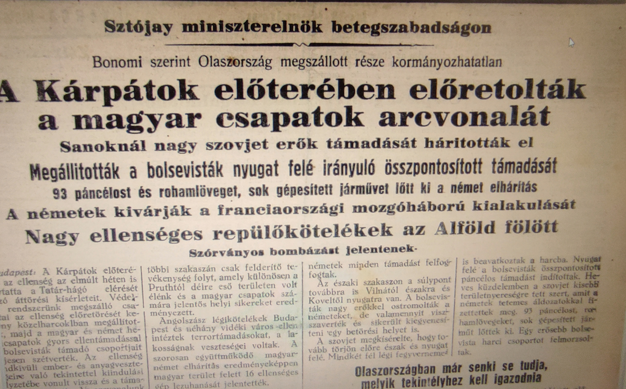 Címlapon jöttek a hírek: Sztójay Döme miniszterelnök szabadságra ment; a Kárpátok előterében előretolták a magyar csapatok arcvonalát; Sanoknál nagy szovjet erők támadását hárították el; Megállították a bolsevisták nyugat felé irányuló, összpontosított támadását; 93 páncélost és rohamlöveget, valamint számos gépesített járművet lőtt ki a német elhárítás; A németek kivárják a franciaországi mozgóháború kialakulását; Nagy ellenséges repülőkötelékek az Alföld fölött; Szórványos bombázásról érkeztek jelentések.