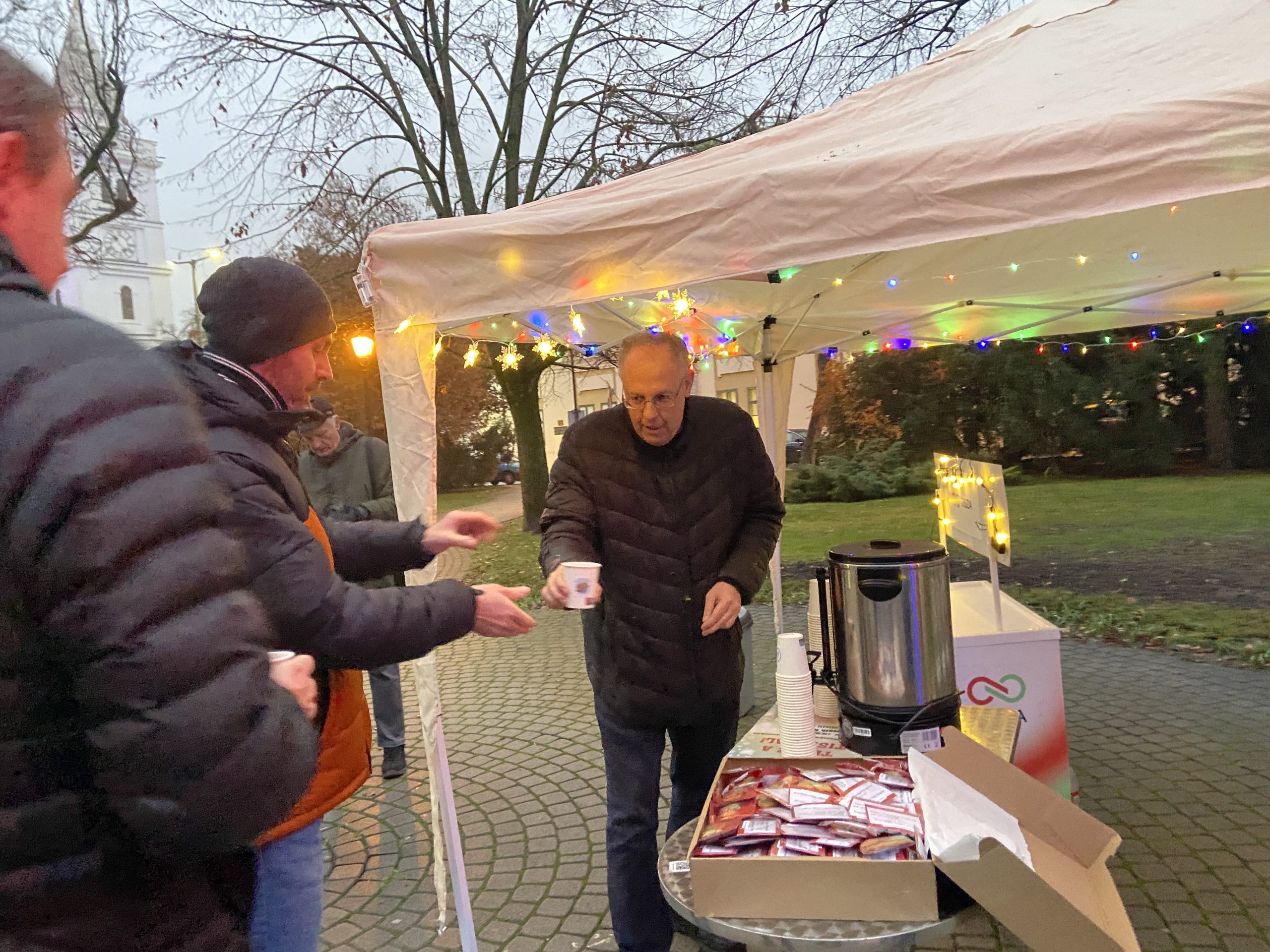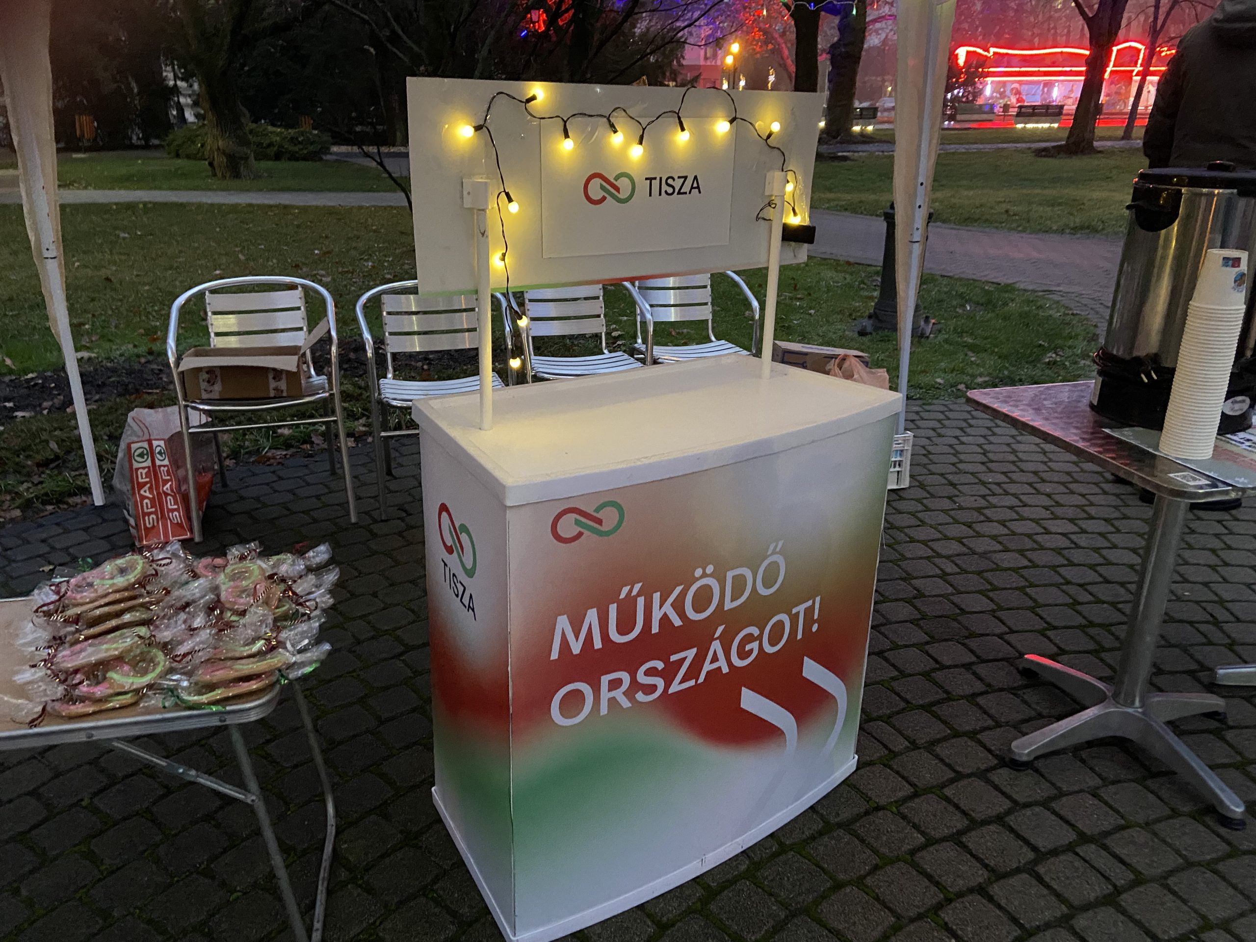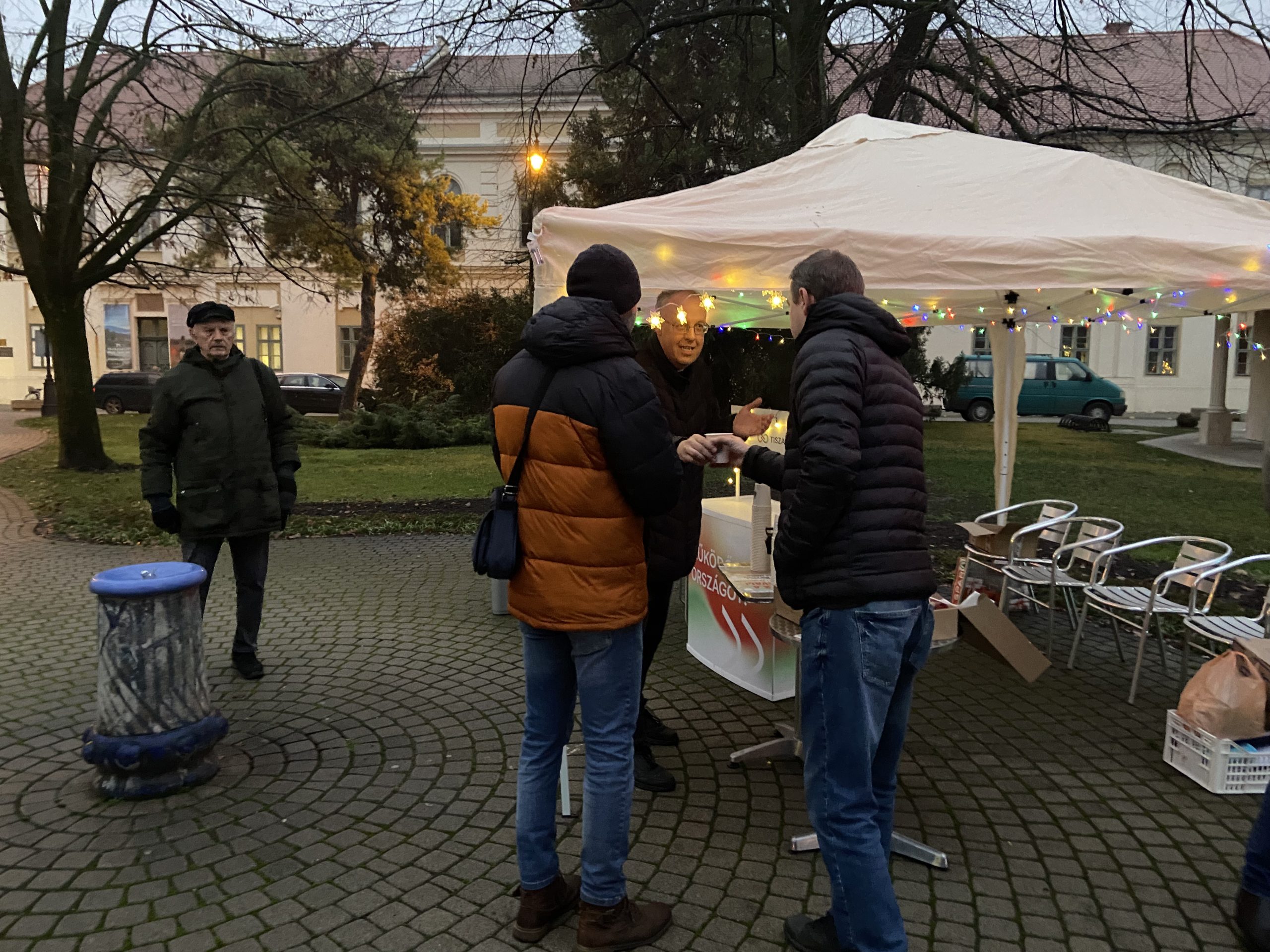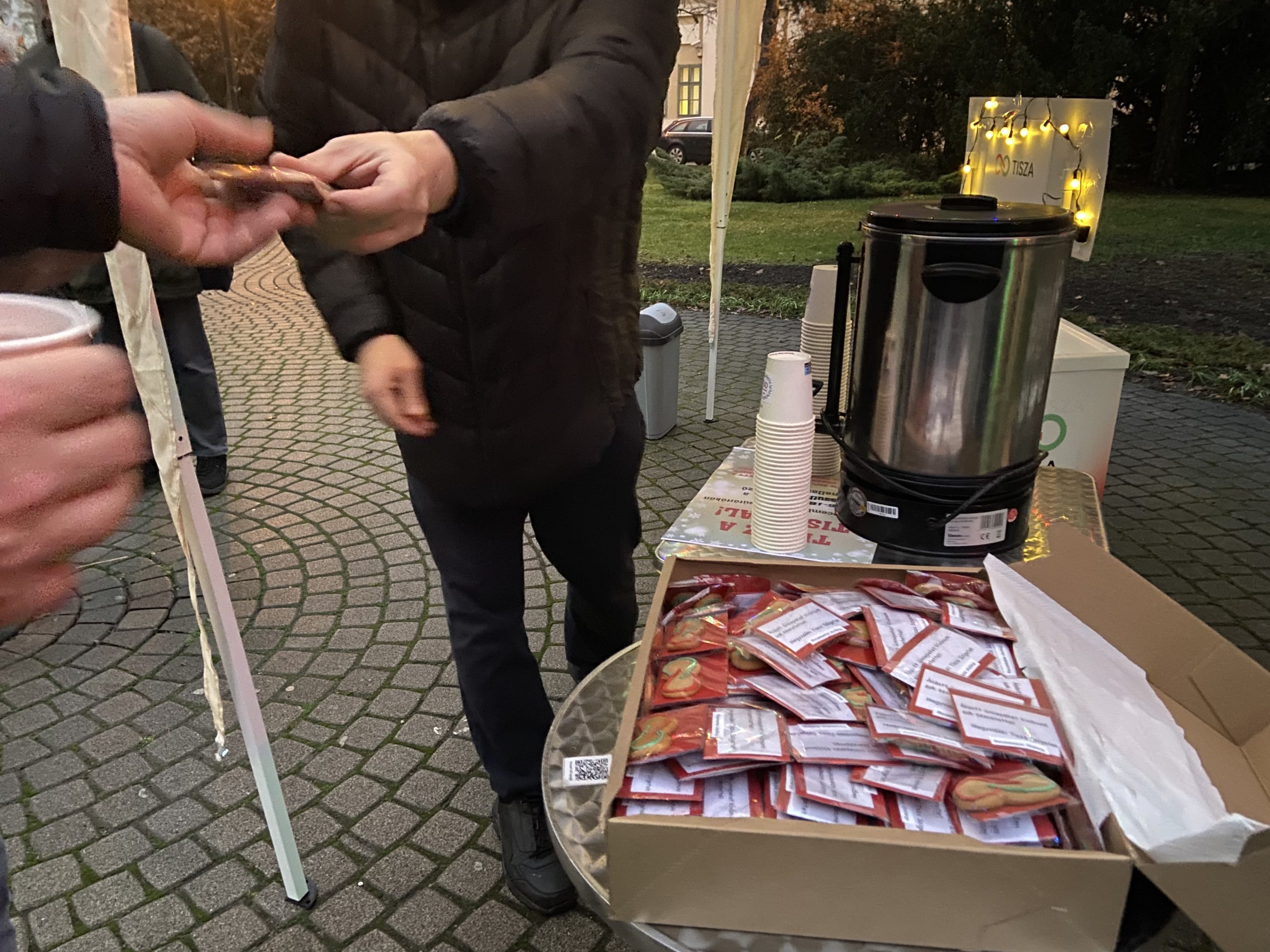 A Hódvilág Tisza Sziget „Teázz a Tiszával!” rendezvényén beszélgettünk Ferenczi Gáborral, CsoCsa4 tiszás jelöltjével a Kossuth Kifli Kávézó mellett felállított sátornál. A teázás mellé ezúttal mézeskalács is járt: a Hegyvidéki Tisza Sziget ünnepi jókívánságokkal ellátott, a párt logóját formázó mézeskalácsot küldött meglepetésként, a helyi Hódvilág Tisza Sziget pedig egy hasonló, saját készítésű finomsággal készült. A járókelők nemcsak teát és süteményt kaptak, hanem alkalmat is arra, hogy személyesen kérdezzenek a jelölttől — többen éltek is vele.