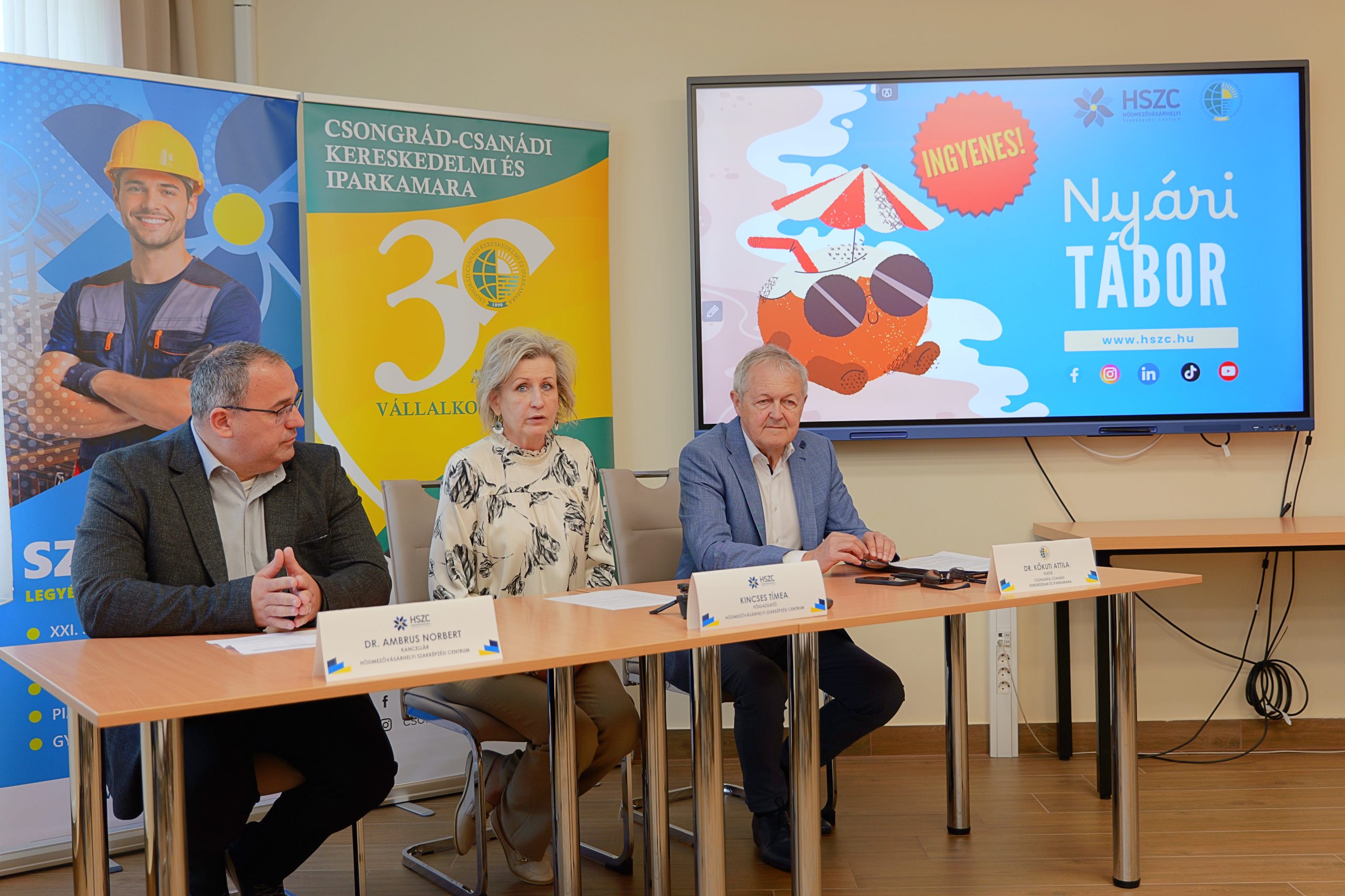 A mai sajtótájékoztatón Kincses Tímea, a Hódmezővásárhelyi Szakképzési Központ főigazgatója, Kőkuti Attila, a Csongrád Csanád Megyei Kereskedelmi és Iparkamara elnöke és Ambrus Norbert, a HSZC kancellárja elmondták: ezen a nyáron térítésmentes, egyhetes táborokba várják az érdeklődő gyerekeket a szakképzési centrum iskoláiban.