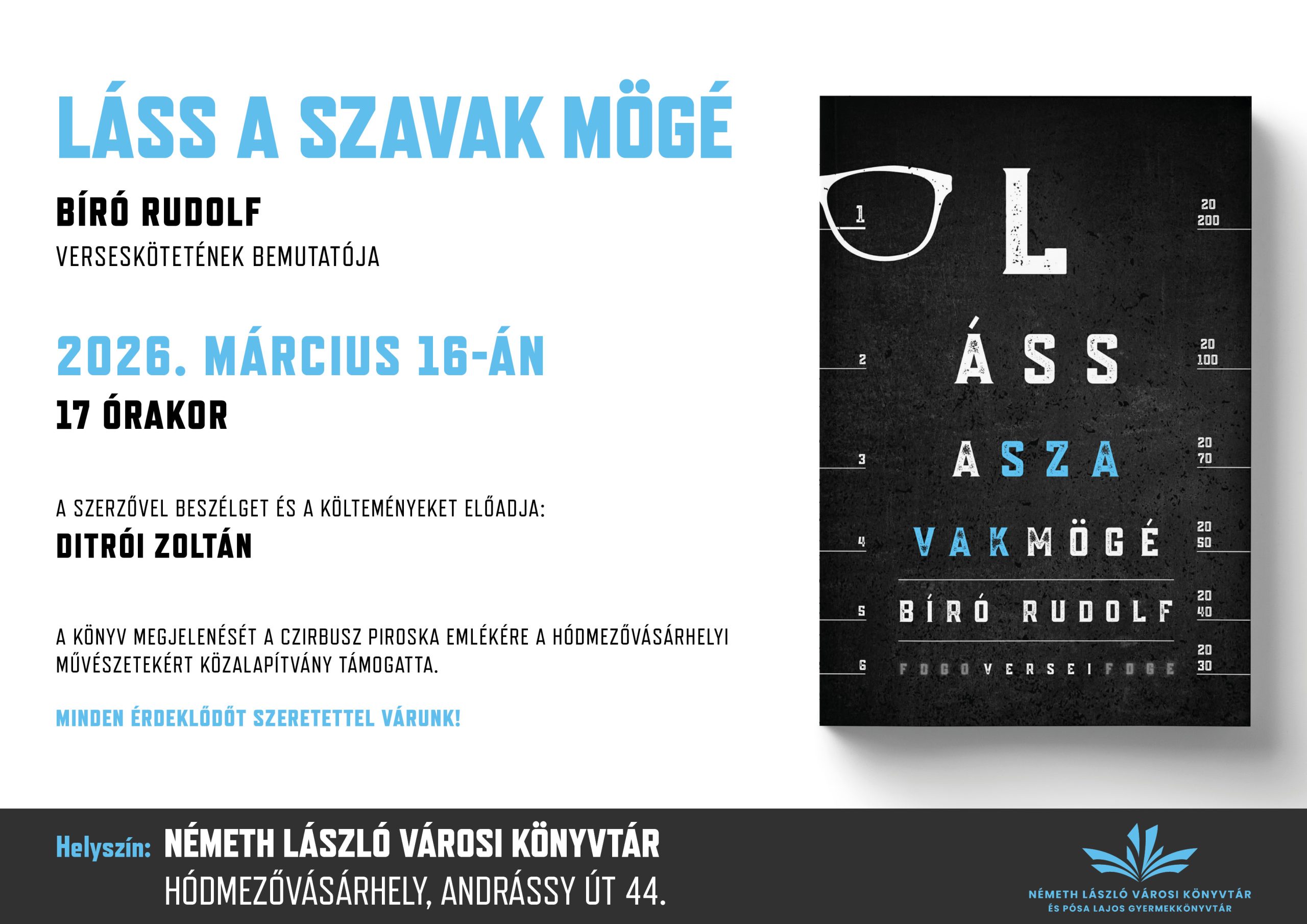 Bíró Rudolf „Láss a szavak mögé” című verseskötetét mutatják be hétfőn délután 5 órától a Németh László Városi Könyvtárban.