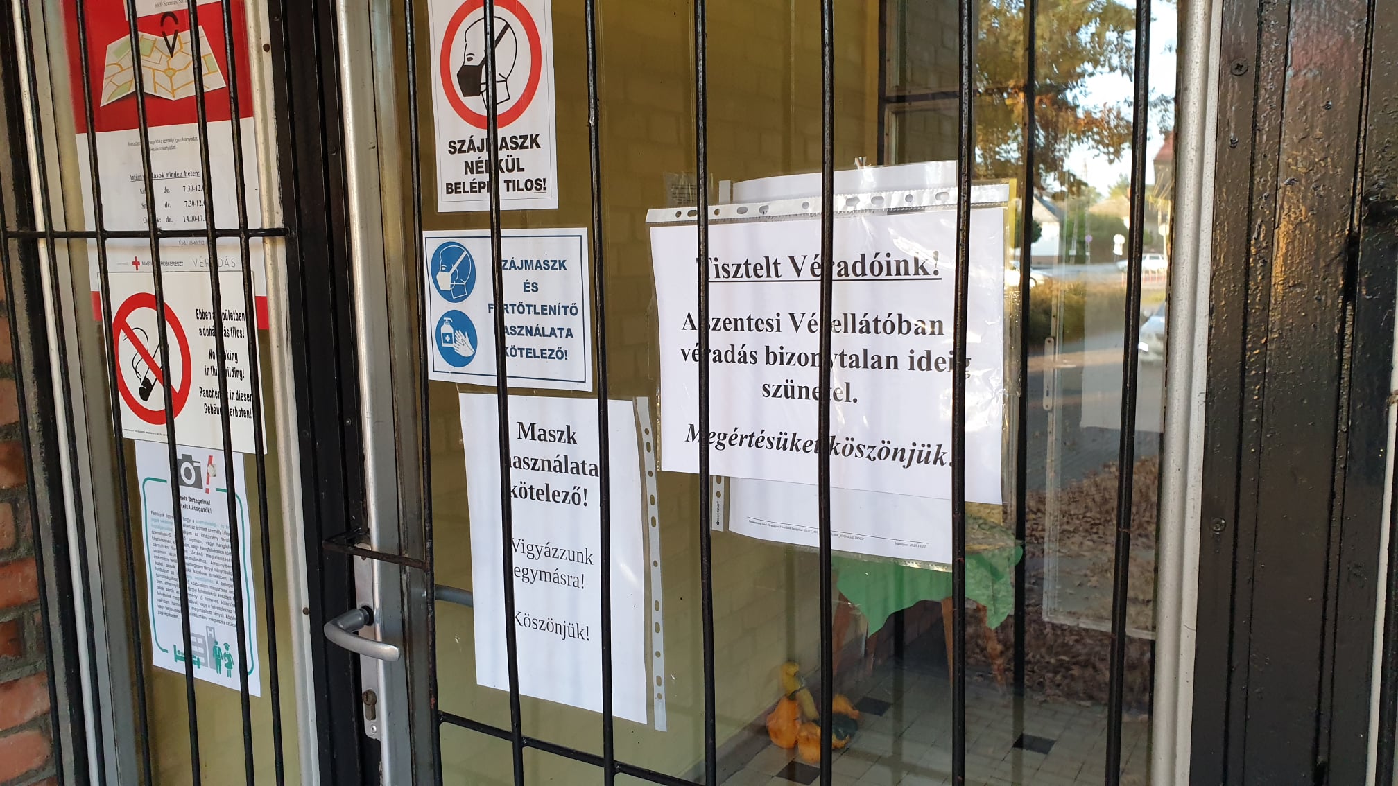 A vöröskereszt megyei szervezete azt is közölte a minap, hogy ezen a héten valamennyi szentesi intézeti véradás, illetve a Fábiánsebestyénben és Eperjesen tervezett véradás elmarad. A szentesi vérellátó központ bejáratához kifüggesztett hirdetmény szerint a véradás bizonytalan ideig szünetel.