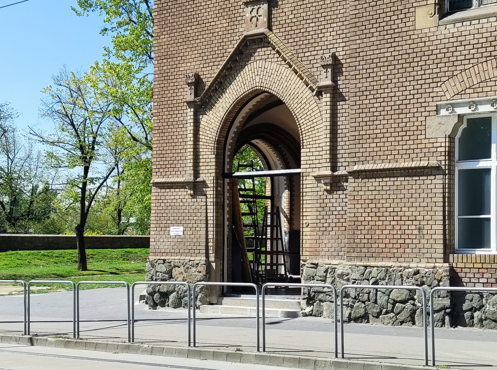 Aki a Bethlen felé járt ma, az láthatta, hogy a két oldalsó kapu egyikét vissza is tették a helyére, az úgy néz ki, mintha vadonatúj lenne. A felújítás részeként várhatóan a hét végén visszakerül a Szőnyi utcai kapu ki, s kiemelik a helyéből a sarkit is, hogy azt is felújítsák. A munkálatok része a kapuk melletti, lábazati szinten elhelyezkedő homokkő-elemek felújítása is. Ezek az elmúlt évtizedekben jelentősen megrongálódtak. A korábbi lépcsők nem voltak már eredetiek, stílusukban nem illeszkednek az épület homlokzatához, ezért teljesen elbontották azokat. Helyükre – restaurátori ajánlás alapján – új, műkő lépcsők épültek.