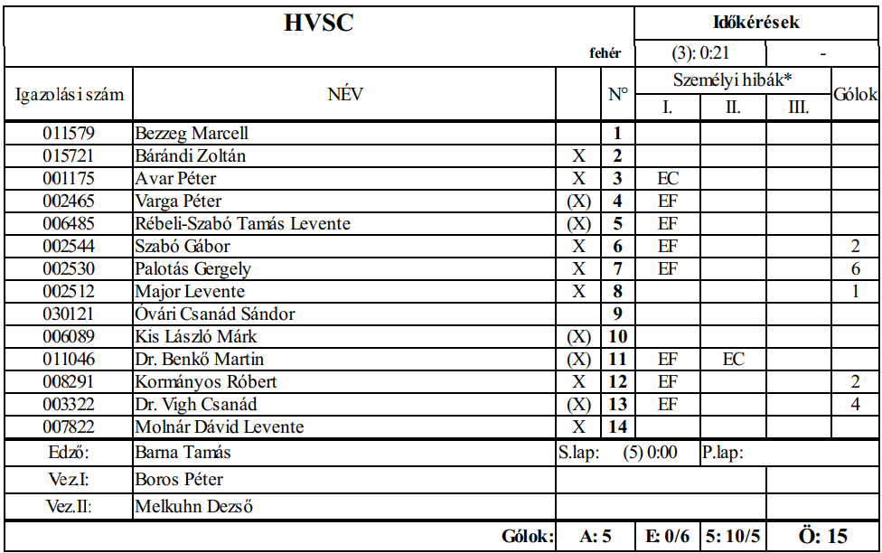 Ezt követően került sor az ötméteresekre. Itt először a HVSC hibázott, de a Szeged is rontott egy alkalommal, aztán pedig ők hagyták ki újra a büntetőjüket, így 2 pont jutott a HVSC-nek, egy a Szegednek.