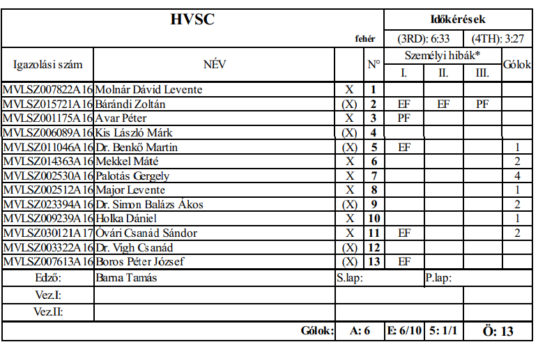 HVSC – Hajdúszoboszlói Sportegyesület 22-4 (5-0, 5-2, 6-1, 6-1)
